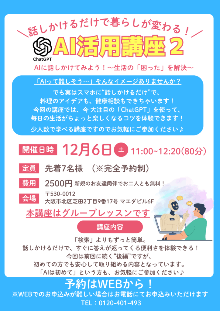 AI活用講座(ChatGPT体験) 《後編》を開催します✨
